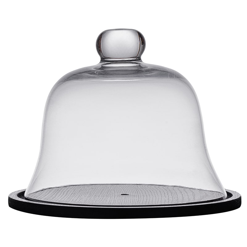 Cupola din sticla transparenta este ideala pentru ocazii festive, pentru servirea prajiturilor, macarons, alte tipuri de dulciuri. Baza este din lemn stratificat cu diametrul de 20,8 cm si inaltimea 1 cm.