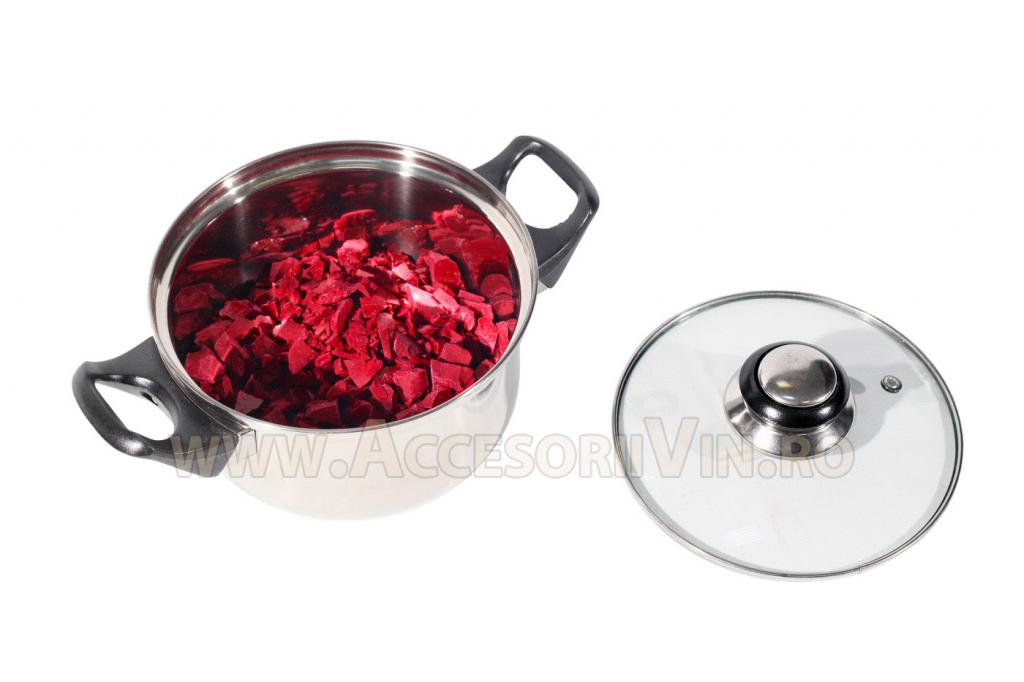Vas din inox pentru topit ceara. Produsul este insotit de un capac transparent.