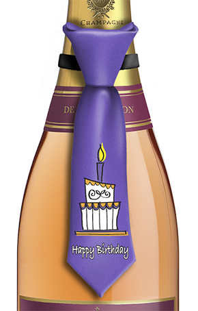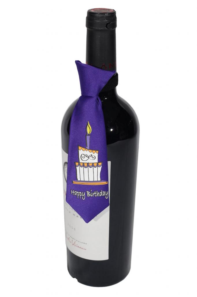Adorabila cravata pentru accesorizarea unei sticle este perfecta pentru o aniversare. Nu doar ca este prevazuta cu un imprimeu cu un tort, dar ii si canta sarbatoritului "Happy Birthday!".