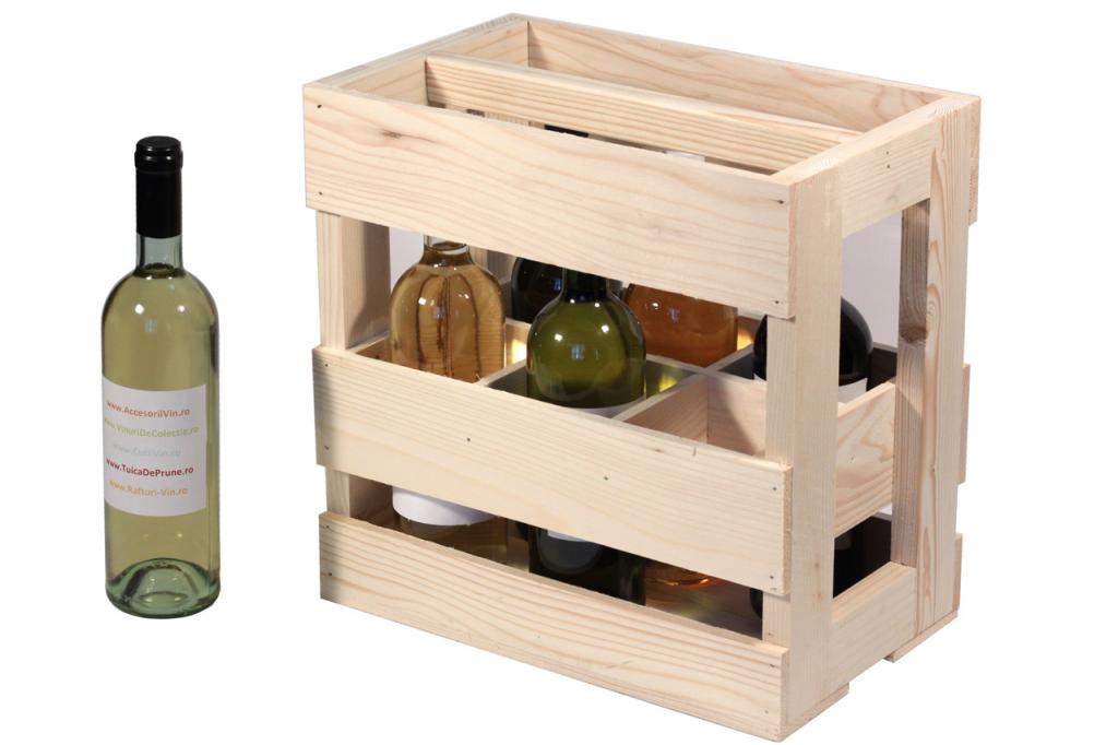 Pentru un transport facil, va oferim o naveta ce ofera spatiu pentru 6 sticle de vin. Cu un design simplu, dar rezistent, confectionata din lemn, naveta se poate utiliza si ca suport pentru depozitare prin simpla sa intoarcere invers.