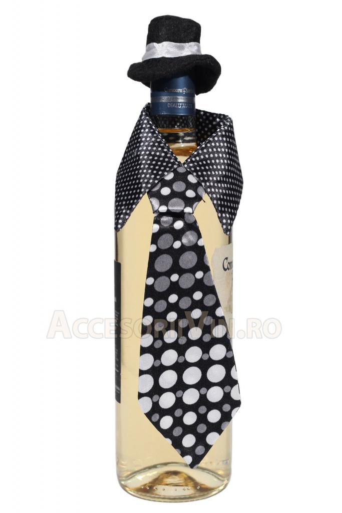Eleganta si rafinamentul unei sticle de vin vor fi valorificate cu ajutorul accesoriilor preferate ale unui gentlemen: cravata si palarie.