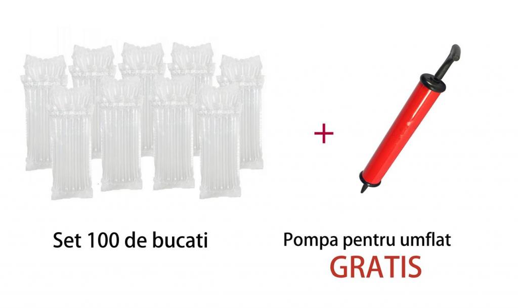 Setul este alcatuit din 100 de pungi gonflabile si este insotit de o pompa pentru umflat GRATIS.
