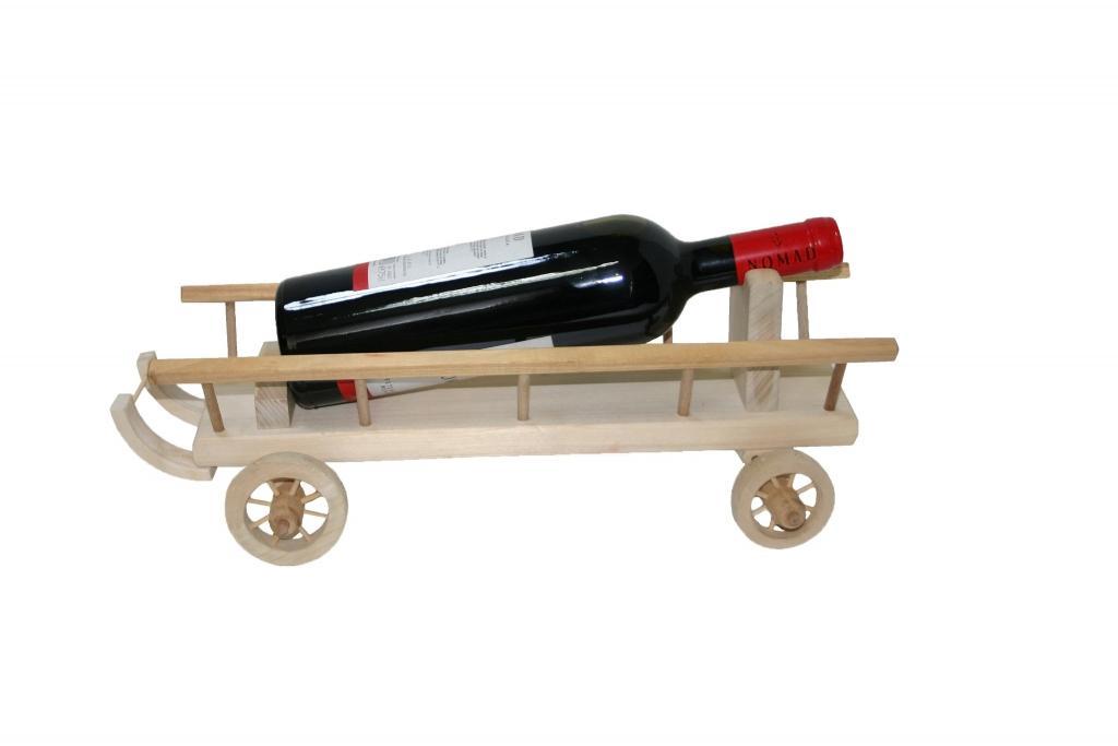 Pentru bunul prieten de peste hotare, va recomandam cel mai potrivit suvenir de pe meleagurile noastre: o sticla de vin romanesc oferita intr-un suport confectionat din lemn, in forma de caruta.