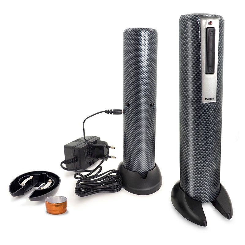 Designul elegant al acestui tribuson electric este caracteristic marcii Pulltex. Bateria puternica permite desfacerea a pana la 30 sticle cu o singura incarcare. Fiind compact, tirbusonul poate fi depozitat usor in sertarul dulapului de bucatarie. Este unul dintre cele mai usoare modele de pe piata. Este inclus un taietor de capison care are si rol de suport al tirbusonului, oferindu-i stabilitate perfecta.