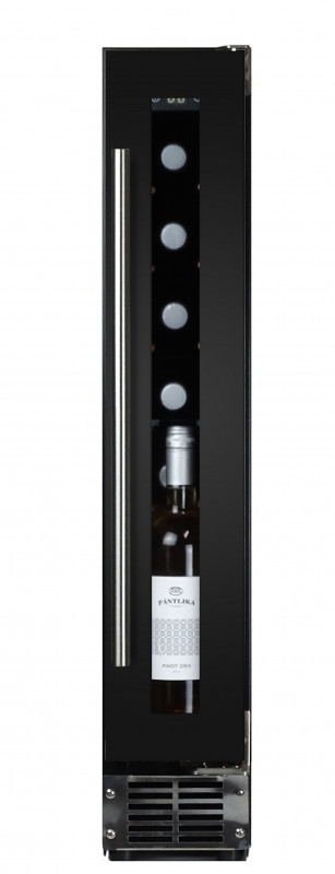 Acest racitor monotemperatura poate raci 9 sticle vin. Are racire cu compresor. Racitorul este proiectat pentru a fi incorporat sub blat. Are un aspect elegant care il recomanda incadrarii in bucatarii si restaurante moderne. 9 sticle sunt stocate pe lamele fixe din lemn.