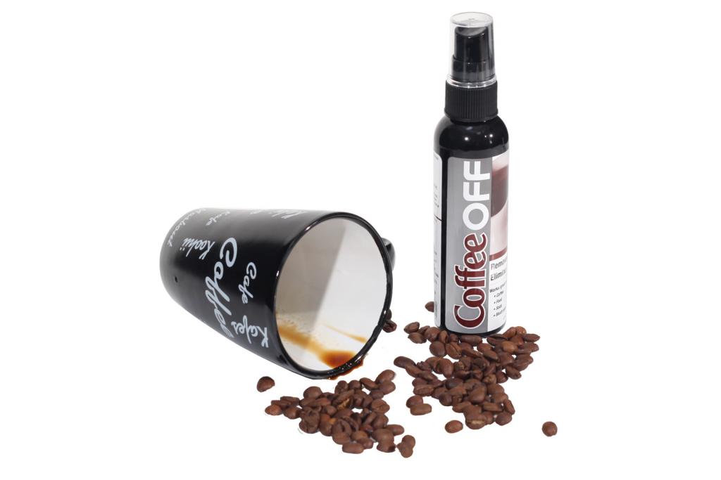 Cu ajutorul formulelor descoperite de Bio Pro Research, Coffee Off spray "mananca" petele. Indeparteaza petele de cafea si alte pete de natura organica de pe suprafete textile si suprafete dure. Produsul se pulverizeaza pe pata de cafea si se lasa sa actioneze timp de 5 minute pentru petele proaspete sau cateva ore pentru pete vechi. Se spala apoi materialul sau suprafata cu apa si detergent pentru indepartarea tuturor resturilor aparute in urma actiunii produsului.