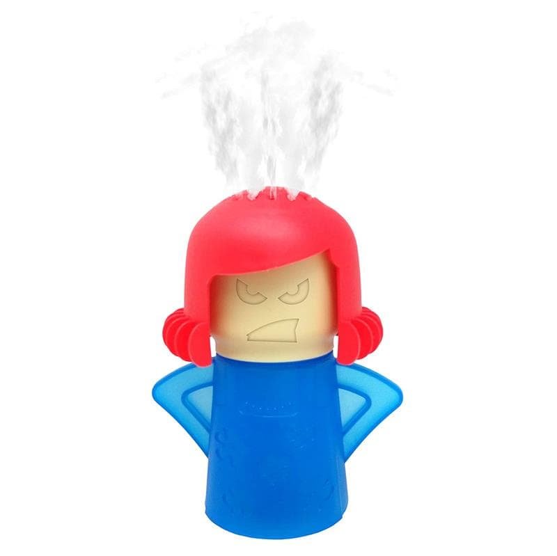 Dispozitivul pentru curatarea cuptorului cu microunde are o forma haioasa. Se adauga otet si apa in interiorul figurinei si cu ajutorul aburului degajat prin incalzirea figurinei in cuptor, se curata si se dezinfecteaza cuptorul in cateva minute, evitand astfel utilizarea substantelor chimice agresive.