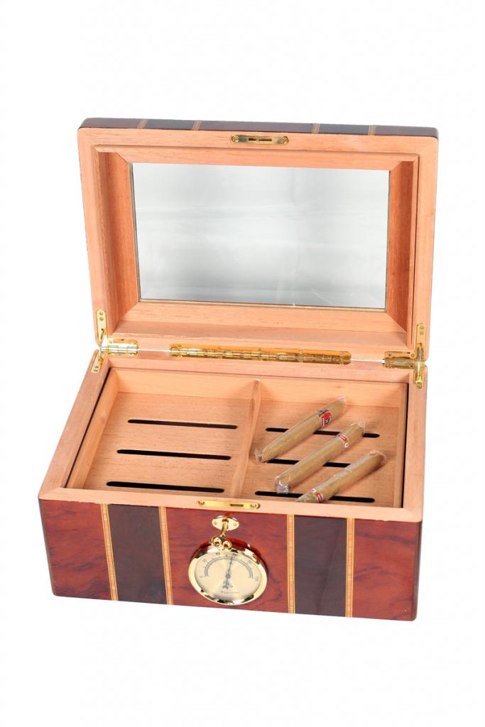 Prin urmare, aceasta cutie are rolul de a pastra tigarile tip trabuc in conditii de umiditate controlata. Are un umidometru care indica umiditatea din interiorul cutiei. Cand aceasta nu mai corespunde, se intervine si se schimba parametrii mediului inconjurator (se muta cutia in alt loc sau se incearca ajustarea umiditatii mediului in care sta cutia).