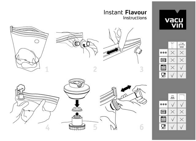 Adaugati un plus de savoare carnii sau legumelor prin intermediul marinarii. Acest procedeu se realizeaza intr-un timp foarte scurt. Astfel, punga Instant Flavour de la Vacu Vin va permite sa preparati feluri de mancare delicioase, fara a pierde prea mult in bucatarie.