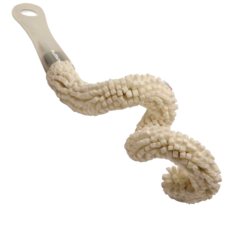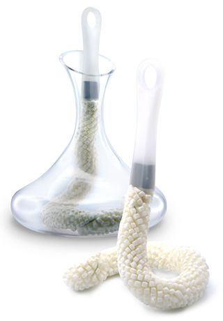 Peria flexibila realizata dintr-un material absorbant ajunge pana la baza decantoarelor si chiar si in cele mai inaccesibile colturi. Peria se poate curata in masina de spalat vase. Designul periei este proiectat de Pulltex.