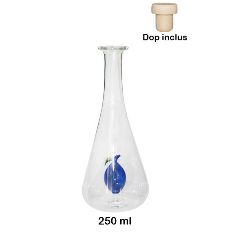 Un toi ce poate servi drept carafa pentru turnarea tuicii in paharute, fiind confectionat cu o capacitate de 250 ml. Toiul este un produs 100% hand made, realizat cu precizie si atentie la toate detaliile. Are inclus in interior un detaliu in forma de pruna, realizat tot din sticla.