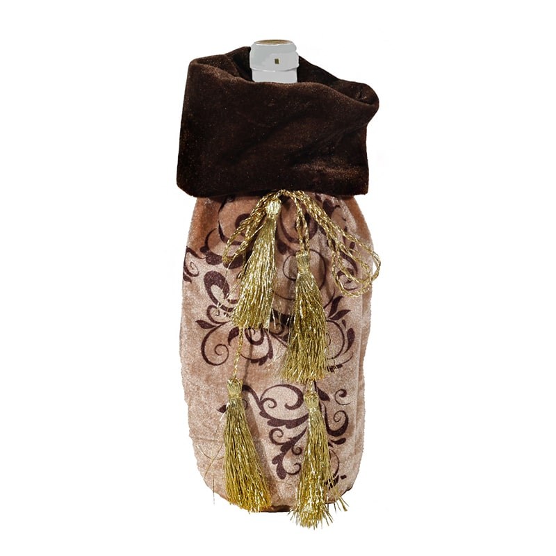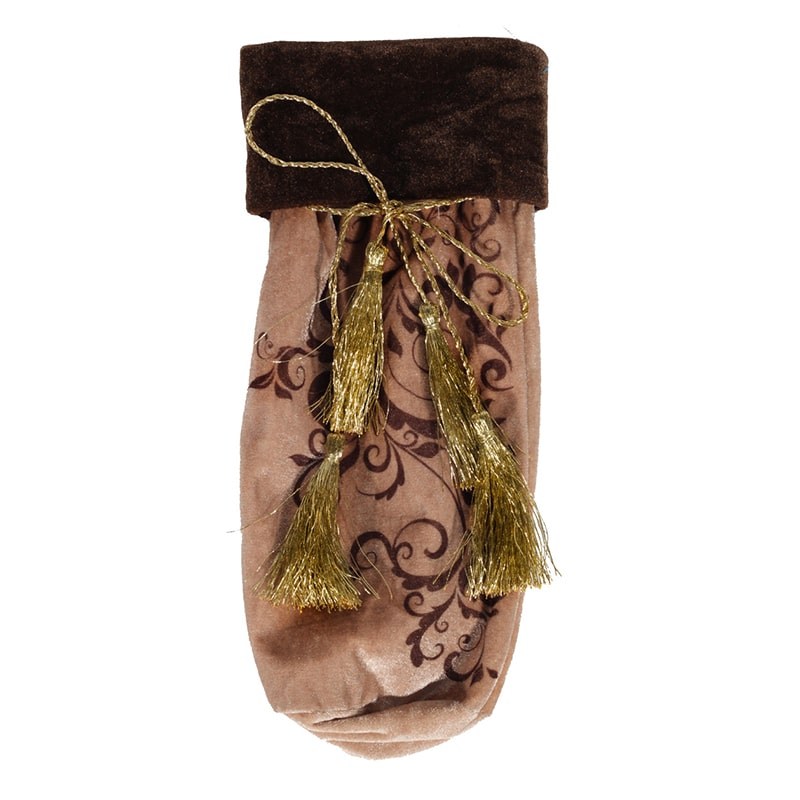 Ce poate fi mai placut decat sa celebrati Craciunul alaturi de o sticla de vin gatita de sarbatoare, cu ajutorul saculetului din catifea de culoare bej?