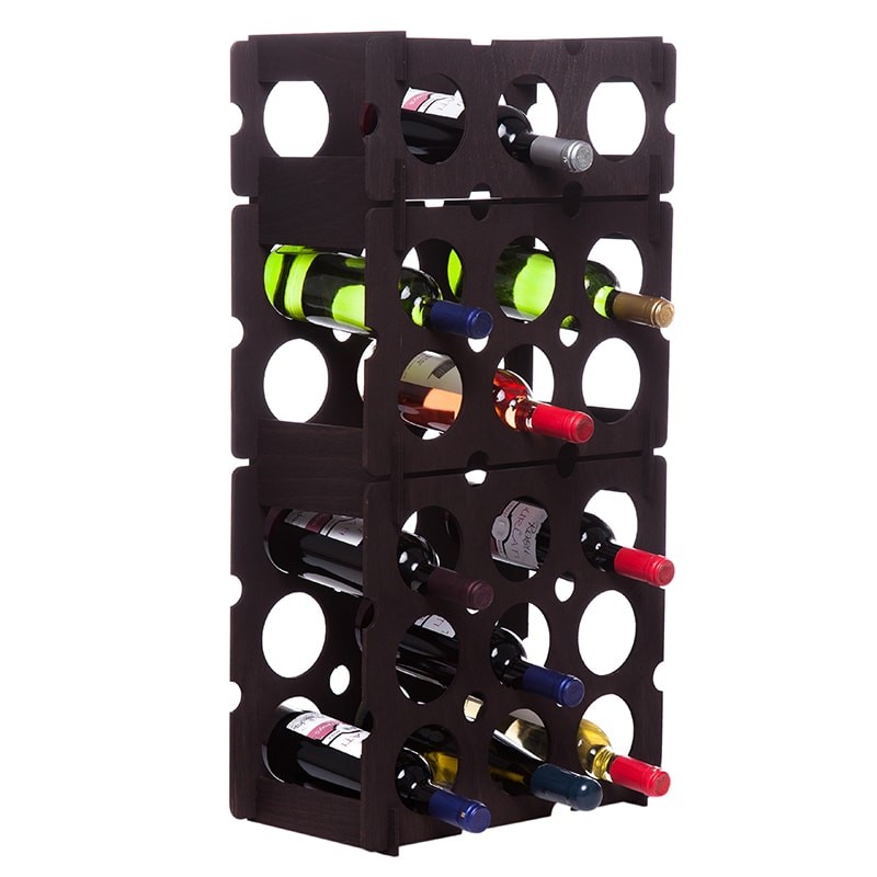 Acest raft din placaj baituit negru si nelacuit este obtinut prin suprapunerea a 3 mini-rafturi: unul de 3 sticle, unul de 6 sticle si unul de 9 sticle. Este realizat din placaj de 6 mm grosime. Este usor, putand fi mutat dintr-un loc in altul, in functie de dorinta dvs. si de spatiul disponibil. Poza are titlu de prezentare, pot exista diferente de nuanta fata de imaginea reala. Dimensiuni: inaltime 76,5 cm, latime 40 cm, adancime 22,5 cm.