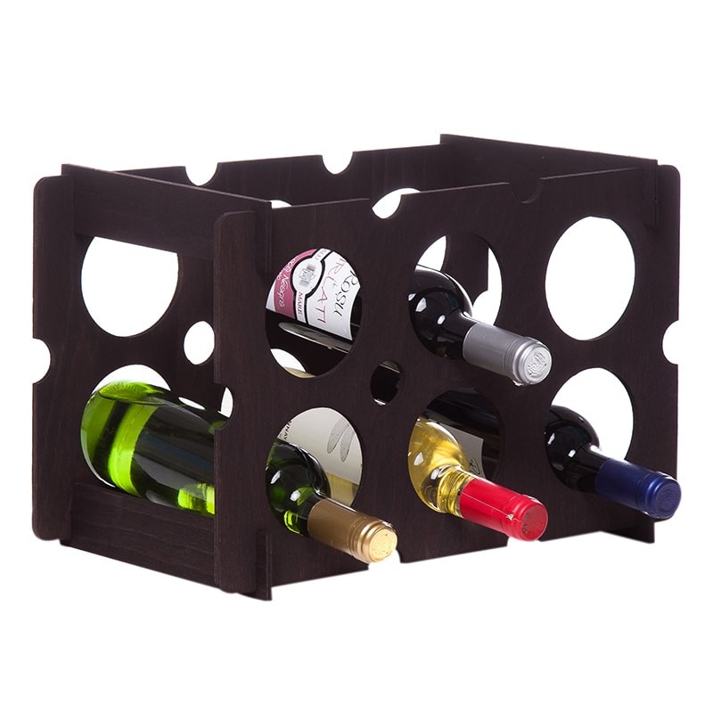 Mini-raft din placaj baituit negru dar nelacuit, destinat pastrarii a 6 sticle de vin, sau chiar mai multe, daca se suprapune peste alt / alte rafturi din aceeasi categorie. Raftul se poate asambla usor cu ajutorul unor conectori simpli din placaj. Pentru suprapunerea peste alt raft, se utilizeaza conectori dubli. Poza are titlu de prezentare, pot exista diferente de nuanta fata de imaginea raftului. Dimensiuni: inaltime 25 cm, latime 40 cm, adancime 22,5 cm.