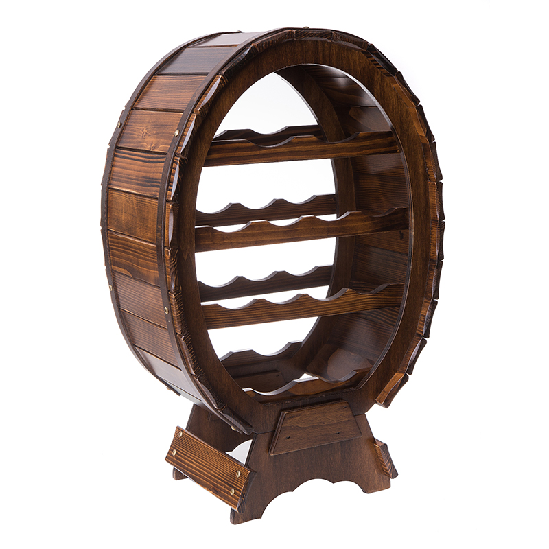 Raftul din lemn baituit maro si lacuit, destinat depozitarii a 12 sticle vin, poate fi utilizat in crame, magazine de vinuri, expozitii si degustari de vinuri.