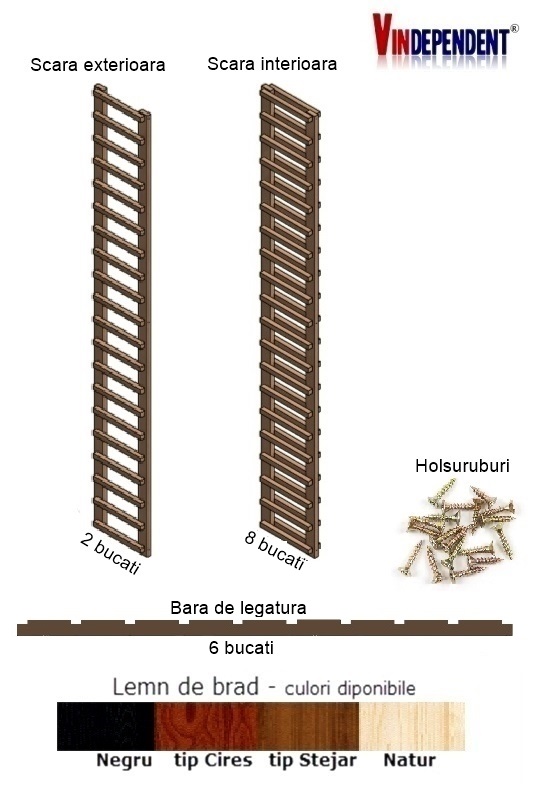 Este un raft realizat din lemn de brad, usor de montat, practic si cu o capacitate de 180 de sticle.