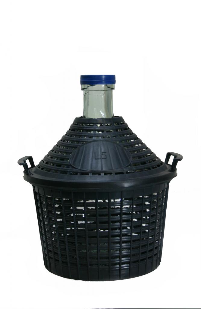 Damigeana cu capacitatea de 5 litri, dotata cu cos din plastic pentru protectia si transportul ei. Este confectionata din sticla care se poate inchide cu un dop de cauciuc care nu este etans, ci doar protejeaza de impuritati.