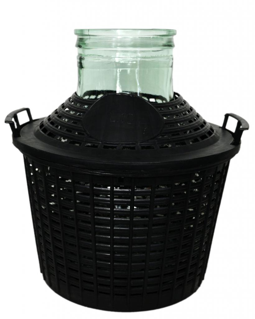 Damigeana cu gura larga, avand capacitatea de 10L, este confectionata din sticla si are invelis de plastic pentru siguranta sticlei si durabilitatea produsului. Diametrul interior al gatului damigenei este de 11,3 cm.