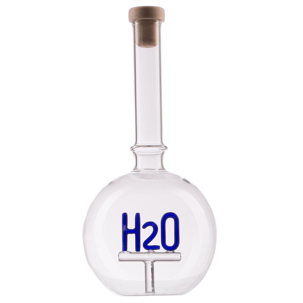 Sticla H2O reprezinta un modest semn al pretuirii noastre pentru acest element vital. Avand forma unui balon cu volumul de 500 ml, sticla este executata manual de artizanii din atelierul nostru. Simbolul chimic al apei, H2O, este realizat manual din sticla albastra. Un dop din plastic alimentar este inclus in pret.
