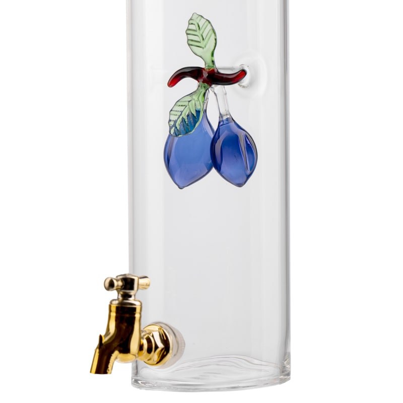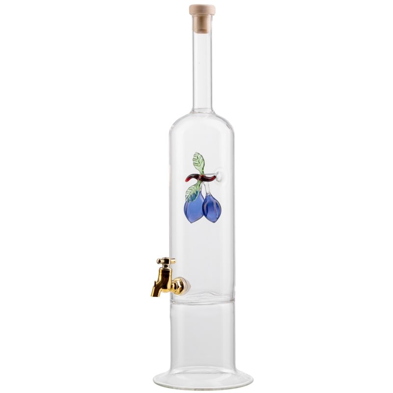 Capacitatea acestei sticle este 500 ml. Sticla este prevazuta cu un robinet din plastic pentru turnarea alcoolului in pahar si un dop alimentar. Ininteriorul sticlei sunt 2 prune din sticla colorata. Sticla este realizata in intregime manual.