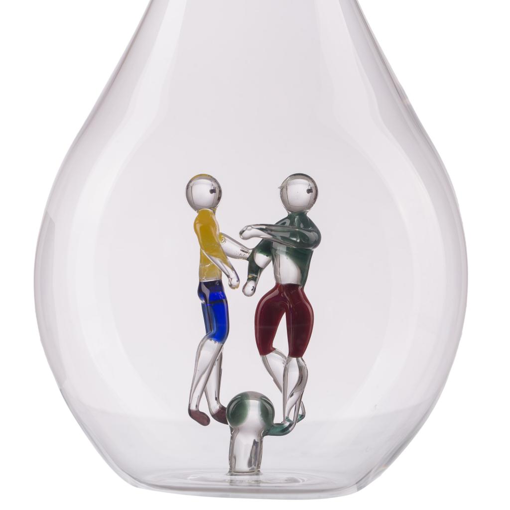Iubitorii sportului cu balonul rotund pot savura bautura preferata in timp ce urmaresc un meci. Noi am creat special pentru ei sticla in forma de lacrima cu 2 fotbalisti in miniatura. Atat sticla cat si fotbalistii sunt executati manual. Volumul sticlei este de 500 ml. Dopul din plastic alimentar este inclus.