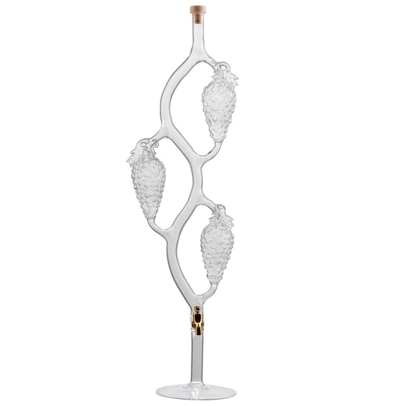 Sticla este realizata manual si poate fi umpluta cu alcool. Robinetul din plastic situat aproape de baza sticlei, permite turnarea alcoolului in pahar. Un dop alimentar este inclus in pret.