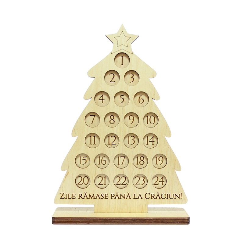 Asa cum un pictor se mandreste cu operele sale de arta, tot astfel si pasionatii de degustari de vinuri se mandresc cu sticlele pe care le-au savurat. Cu ajutorul acestui calendar din lemn stratificat, in forma unui bradut de Craciun, acestia vor putea expune pana la 24 dopuri pluta. Vor pastra astfel o amintire vesnica a gusturilor, aromelor si mirosurilor simtite de-a lungul timpului.