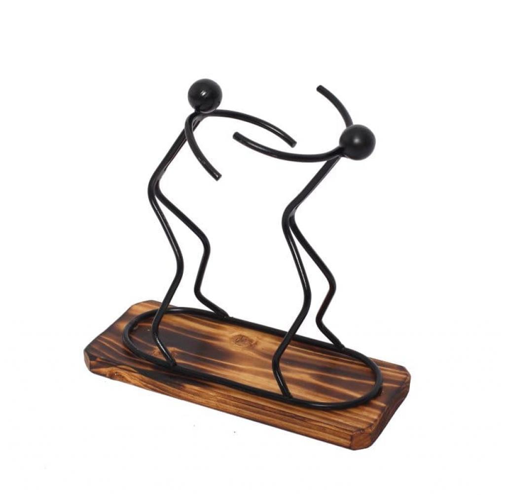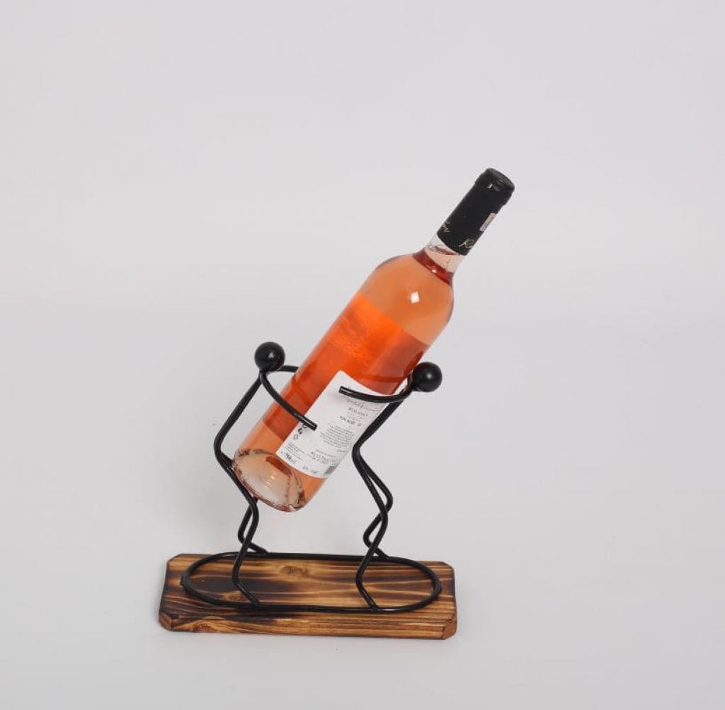 Suportul Twins este confectionat manual si este destinat sustinerii in siguranta a unei sticle vin. Este alcatuit dintr-o baza din lemn de brad tratat pe care se afla elemente de fier vopsite negru.